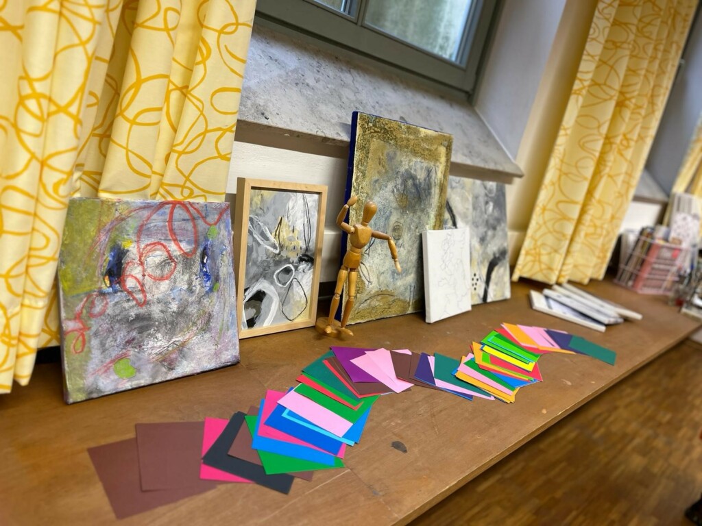 „Es war eine produktive Wachstums und Schaffensatmosphäre mit vielen intensiven Gesprächen . Die TeilnehmerInnen haben es sehr genossen, etwas handwerklich zu tun und sich immer wieder über ihre Werke auszutauschen, sich mit Pinsel und Händen auszudrücken. Vor allem die Neonfarben als Kraftspender in den Bildern wurden mit Begeisterung genutzt.“